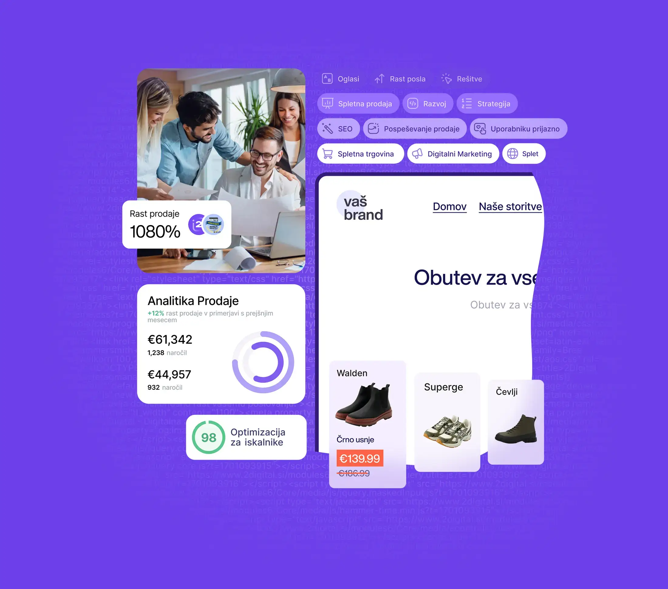 Smo digitalna agencija z lastno razvojno ekipo. Pripeljemo vam kupce in poskrbimo, da vaša spletna stran deluje brezhibno in ustvari še več prihodka.